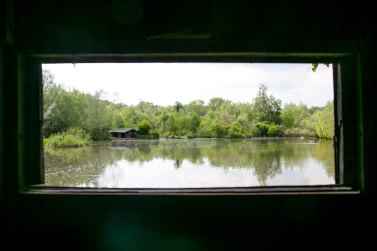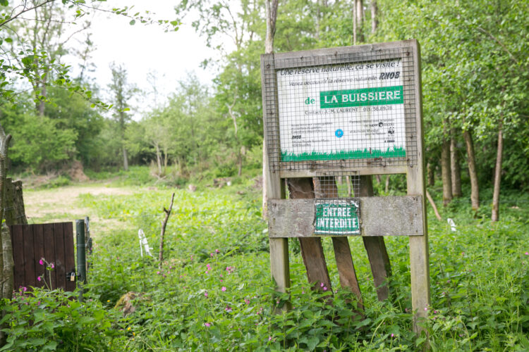Le rendez-vous est fixé à 14h à l’écluse de Labuissière, dans la commune de Merbes-le-Château. Je suis accueillie par un bénévole. Il me conduit à la Réserve naturelle Natagora de la Haute Sambre, lui en moto, moi, le suivant en voiture. Sur son K-way, le logo de Natagora. Je me gare à l’arrière d’une maison. Un homme, vêtu d’une veste vert-kaki sans manches, sort d’un affût.