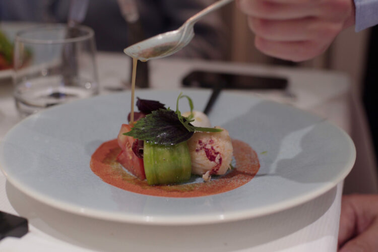 Dans cette même logique de consommation locale, Vincent Gardinal respecte la saisonnalité pour créer ses menus. “En juillet, j’ai cuisiné un plat inspiré d’Auguste Escoffier, revenu à la mode ces derniers temps. Je travaille plusieurs variétés de tomates anciennes, avec du homard breton. C’est la pleine saison à ce moment-là. Une belle vinaigrette, un petit coulis de roquette et un sorbet à base de burrata. Le tout servi sur une jolie assiette”, explique-t-il.