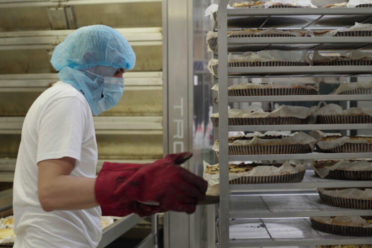 Une sonnerie retentit : les quiches sont cuites et doivent sortir du four. Une dizaine de ces mets encore brûlants répandent alors dans l’atelier une odeur succulente : la tentation d’y goûter est forte !