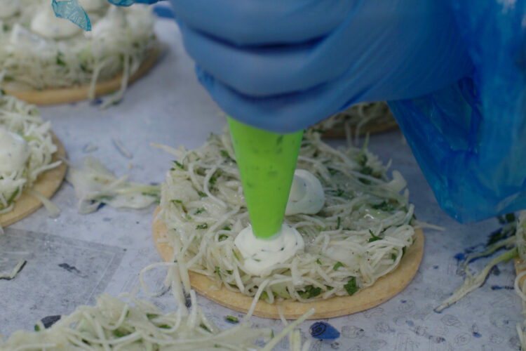 Chacun à leur poste, les travailleurs se concentrent sur certaines tâches précises. Dans la cuisine centrale, une cinquantaine de pâtes, de différents formats, sont disposées : le premier cuisinier dispose la préparation à base de courgettes; le deuxième, la sauce; le troisième, les roulades de saumon… Les gestes sont précis. Le résultat est alléchant et augure un délicieux moment de dégustation.