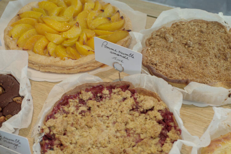 Plus d’une trentaine de préparations sont proposées aux clients. La gamme se compose de tartes sucrées, comme la croûte aux fruits (fraise, myrtille, framboises… en fonction de la saison), le merveilleux ou le cœur coulant au chocolat. Des tartes salées, comme la ‘tomate confite kefta’ ou la ‘poulet coco gingembre’, sont aussi proposées. Enfin, des quiches comme les originales ‘aubergines basilic’, et ‘brie épinards’ ou la plus classique ‘lorraine’, garnissent les étals.