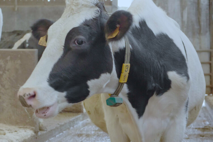 De koeien gaan zelf naar een melkrobot om te worden gemolken. Dat kunnen ze dus dag en nacht, de klok rond. “Het hangt van elke koe af hoe vaak ze gemolken wordt. Als ze net gekalverd heeft, zal ze eerder vaker komen, zo’n 4 tot 5 keer per dag. Haar uier is dan erg gespannen en door het melken kan ze die spanning direct verlichten. Na deze zogeheten lactatiefase neemt het aantal melkbeurten weer af tot 2 à 3 keer per dag”, vertelt hij.